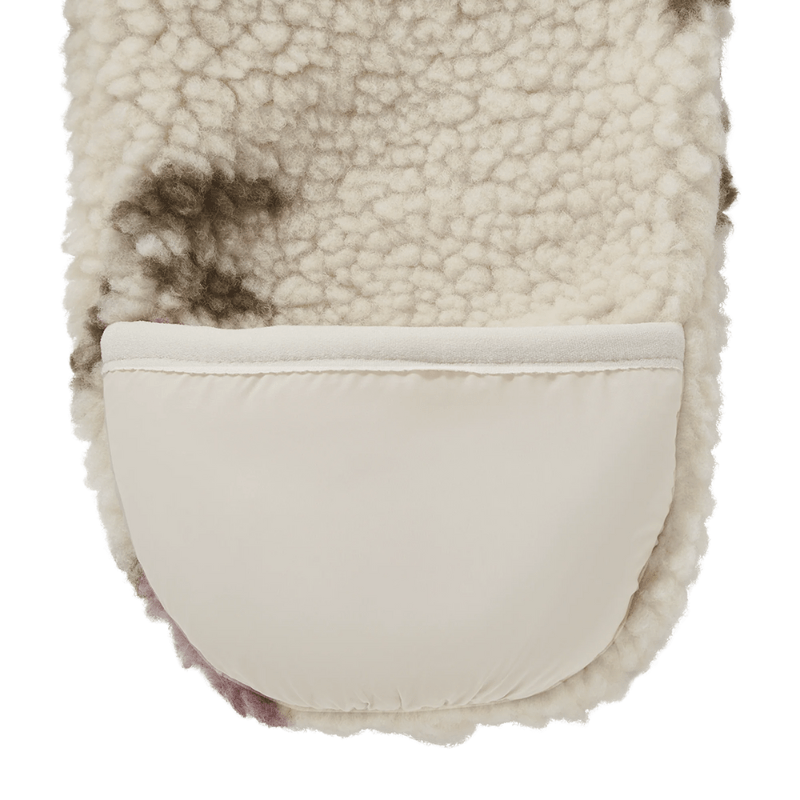 Use a laundry bag to reduce fiber shedding. Regularly clean the washing machine filter to avoid micro plastics from the pile lining to end up in nature.