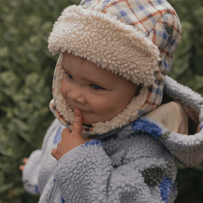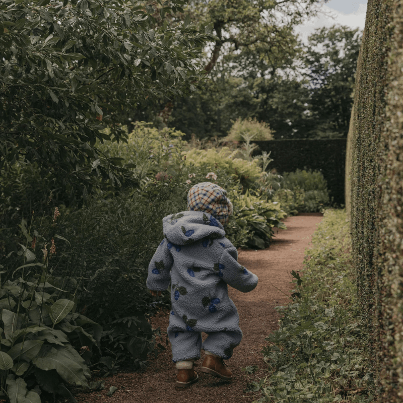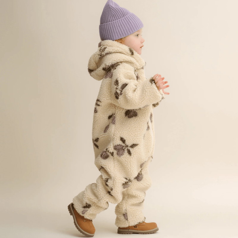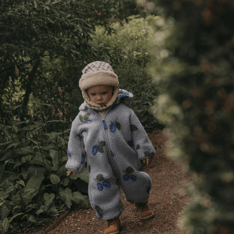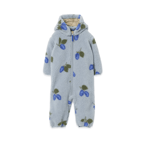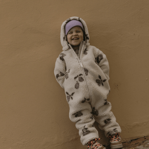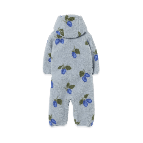Overall in soft jacquard knitted pile with YKK zipper at front for easy dressing made in GRS-certified recycled polyester. The overall has practical wrap-stitched gloves at sleeve and leg ends in our smallest sizes 50/56 & 62/68 and detachable hood on sizes 74/80 & 86/92.