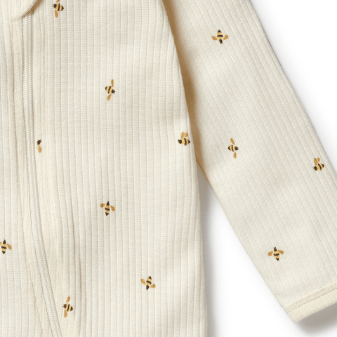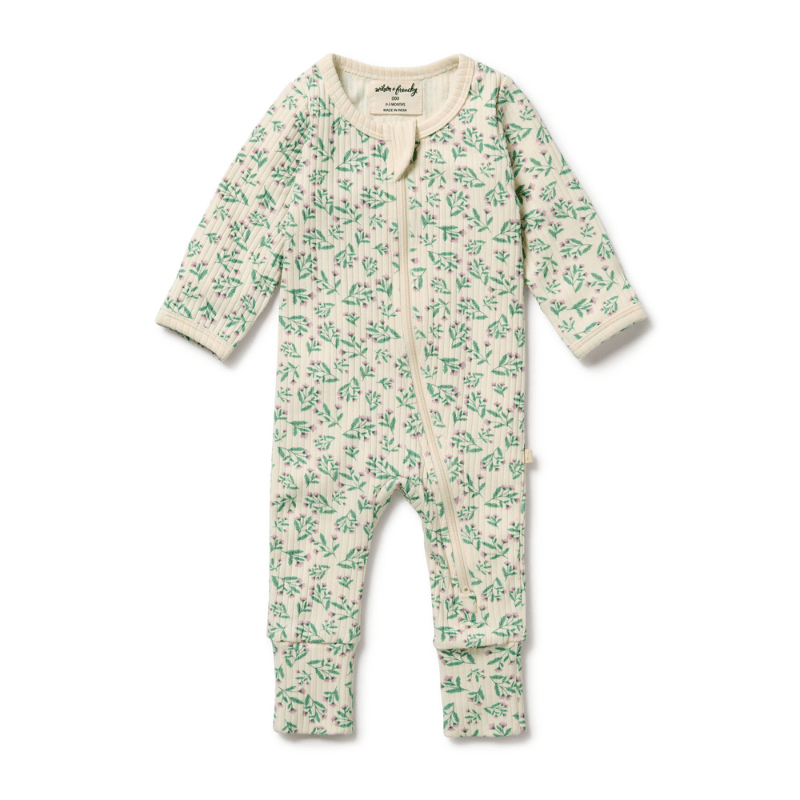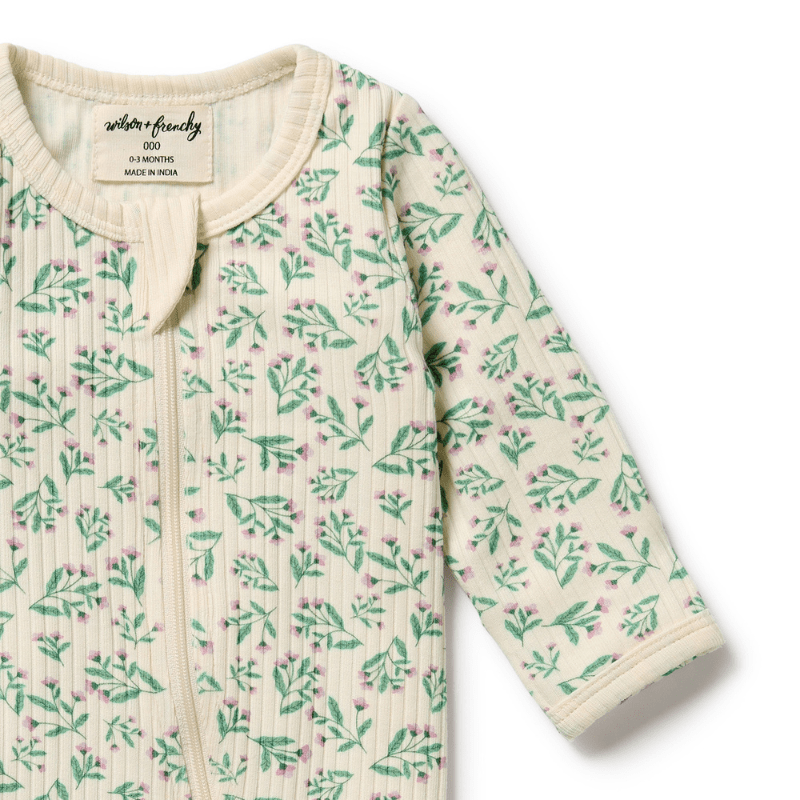 Organic Drop Needle Cotton Zipsuit with Feet by Wilson + Frenchy