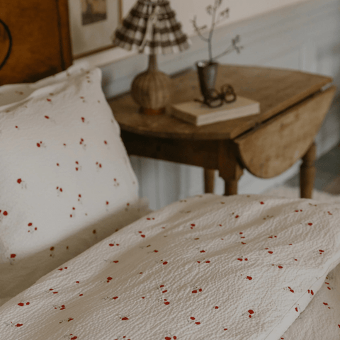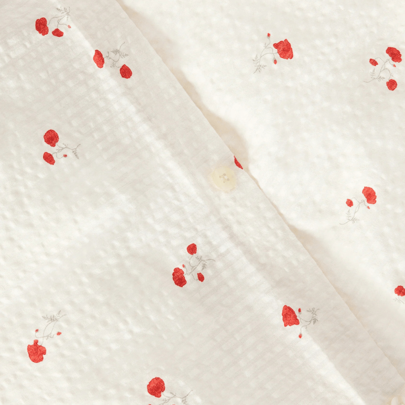 Bedding is the core of what makes Garbo & Friends, designed for the sweetest of dreams and adorned with their signature prints. The duvet cover is made from beautifully textured and soft organic cotton seersucker that adds an extra dimension to the simplistic Poppy print.