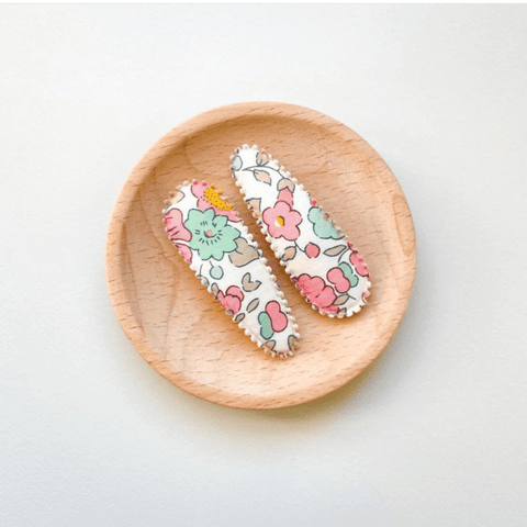Sold in sets of two, these timeless hair clips are finished using a range of Liberty London prints along with a selection of fabrics designed by The Rifle Paper Co.