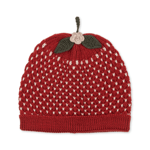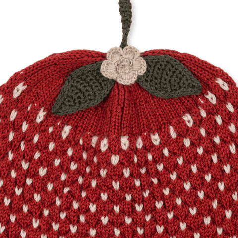 Soft strawberry beanie made from 100% merino wool. A cute little winter accessory in a breathable and warm material that is perfect for insulation.