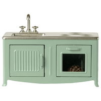 The kitchen is the heart of every home. This kitchen's has many playful details such as the pleasant hue and subtle details like the cabinets, sink, and oven with freshly-baked pie. It's the perfect size for the mouse family.