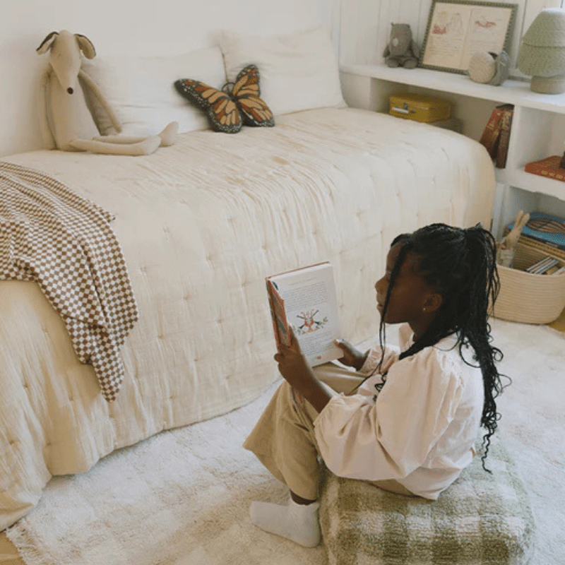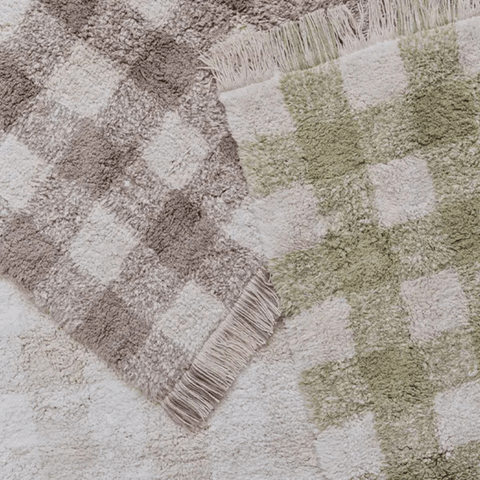 Add a pop of colour and fun to your home with the Lorena Canals washable vichy rug in ivory and natural tones, featuring playful fringes and perfectly paired with the matching pouf and blanket, sold separately. A timeless design, reimagined with a fresh, modern twist.