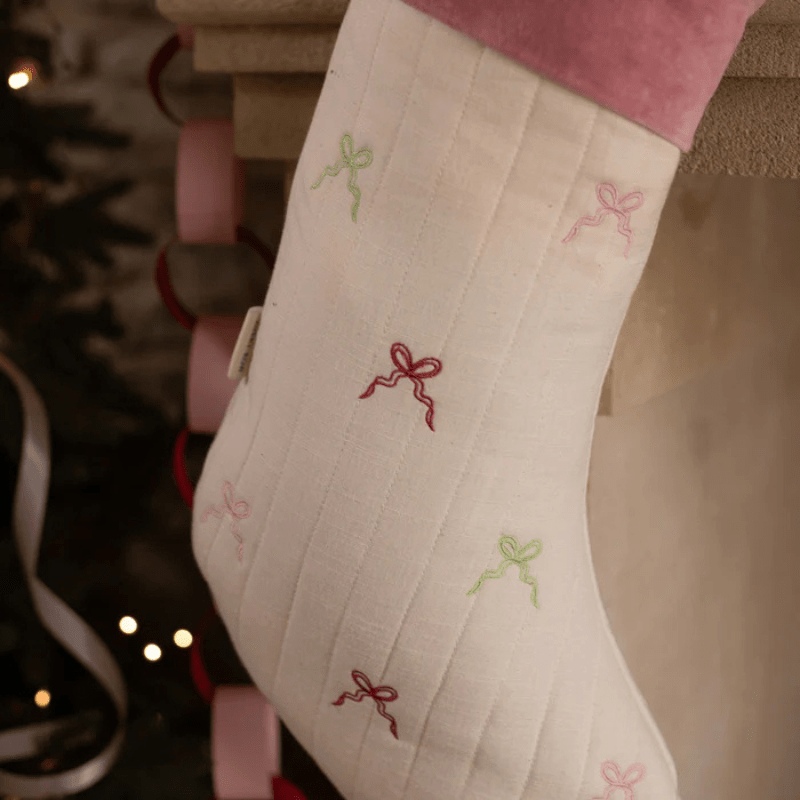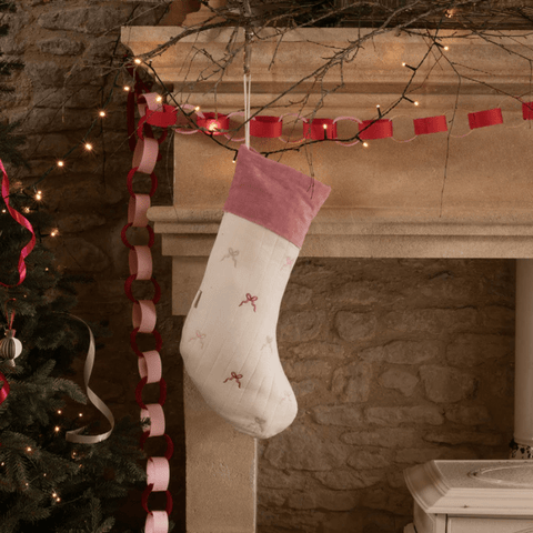 Part of Avery Row's Letters to Santa Collection, follow the magical journey of a special letter as it travels to the North Pole, then from Santa’s workshop to gifts in his sleigh, ready to be unwrapped by little ones on Christmas morning. Designed for parents, children or teenagers, this stocking is adorned with beautiful, embroidered colourful bows. Each year we tweak our Christmas designs with new themes so you know you are truly receiving a unique piece from a limited run. Our Christmas stockings pair beautifully with our matching Advent Calendars and Tree Decorations.