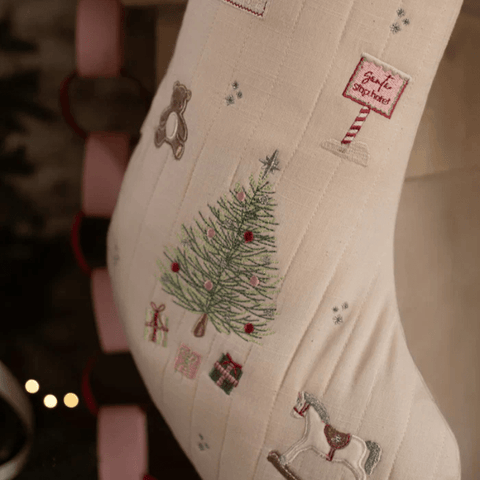 Part of Avery Row's Letters to Santa Collection, follow the magical journey of a special letter as it travels to the North Pole, then from Santa’s workshop to gifts in his sleigh, ready to be unwrapped by little ones on Christmas morning. With embroidered motifs such as teddy bears, rocking horses, and other festive elements, this stocking is an investment piece little one's will treasure for years to come. Each year we tweak our Christmas designs with new themes so you know you are truly receiving a unique piece from a limited run. Our Christmas stockings pair beautifully with our matching Advent Calendars and Tree Decorations.