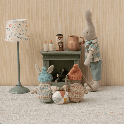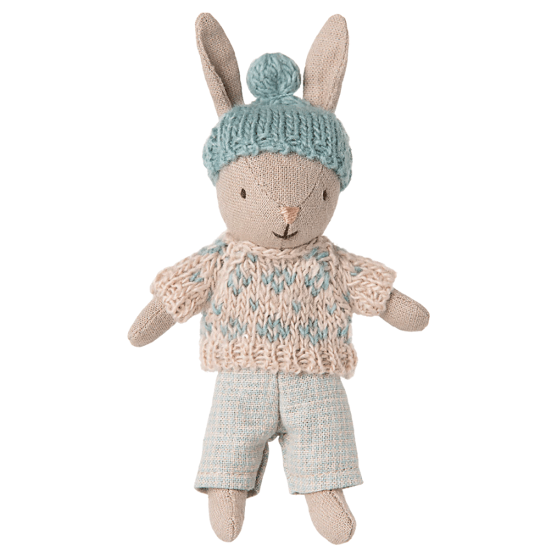 Let the storytelling and hours of play begin with this soft bunny. It fits Maileg accessories in size micro perfectly and can live in the House of miniature dollhouse. This bunny size is also perfect on the go so you can bring the magic everywhere.