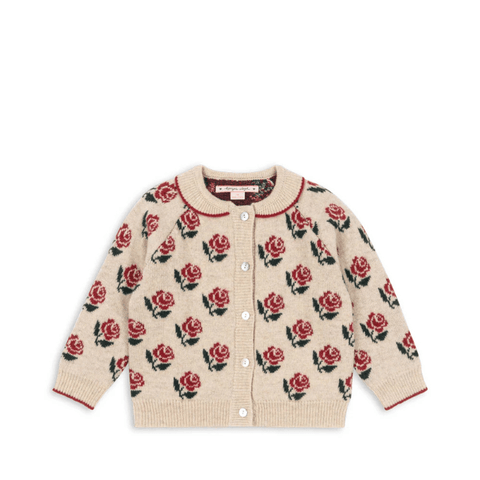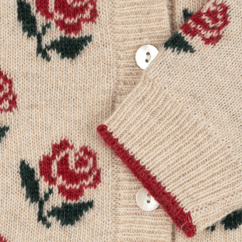 Soft and warm cardigan in a chunky wool blend. Finished with rib hems, regular round neck, and mother of pearl buttons in front.