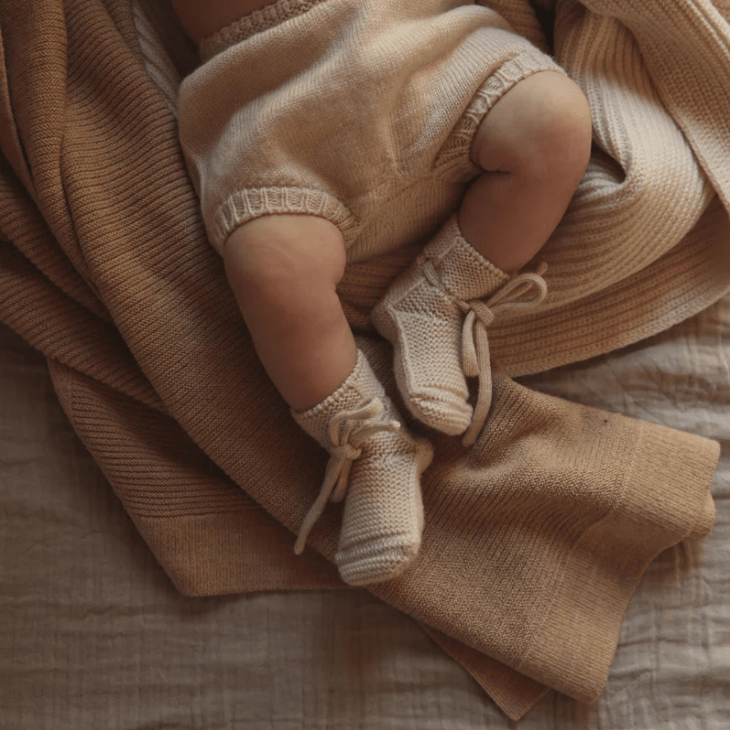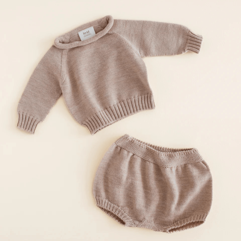 Seamless bloomer knitted in 1 piece. No front and back, no seams, what makes is very comfortable to wear for babies. For extra comfort on the waist, an elastic thread is knitted together with the wool. It's a softer tension than a regular waistband. Little stitch details in the bloomer are the way to make the form of the pants, as there is no front and back sewn together. Made in 100% merinowool. Wearable all year through.Mix and match our colours as a set with the sweater.