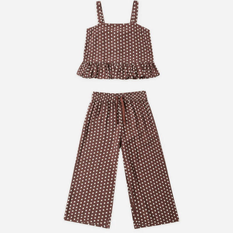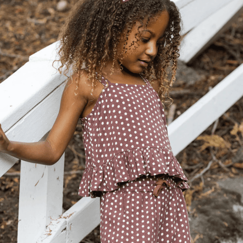 Featuring our 'chocolate polka dot' print - a sweet summery pattern for your gals.