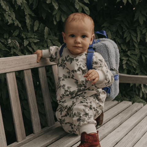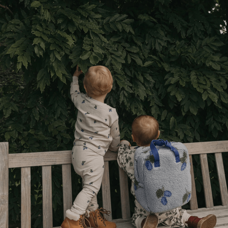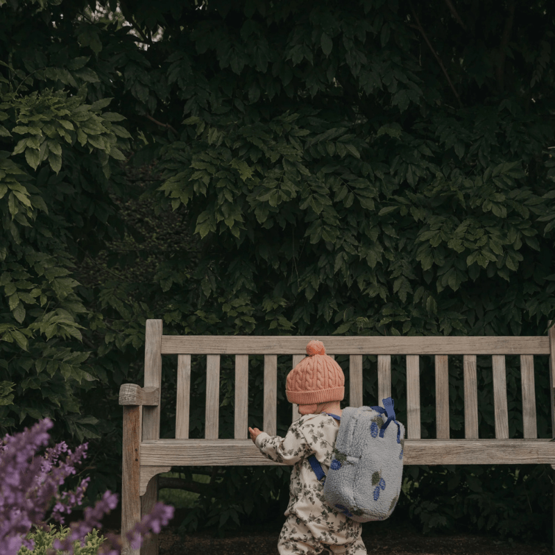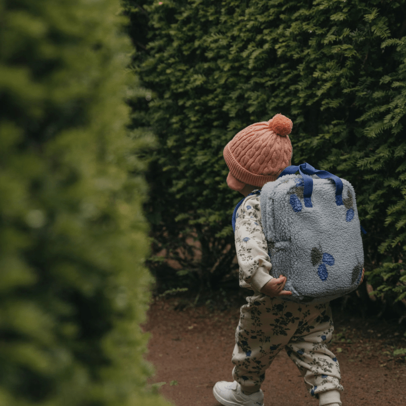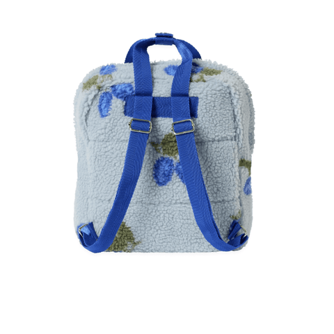 Soft backpack in jacquard knitted pile, perfect for back to school or seasonal excursions. The backpack has adjustable shoulder straps in contrast colour and zip closure.