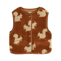 Sleeveless cardigan in icy-brown faux-fur with all-over ecru squirrel print.