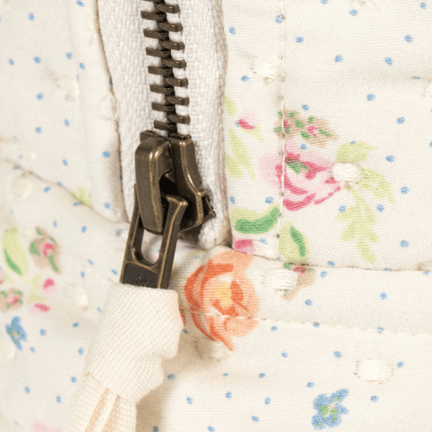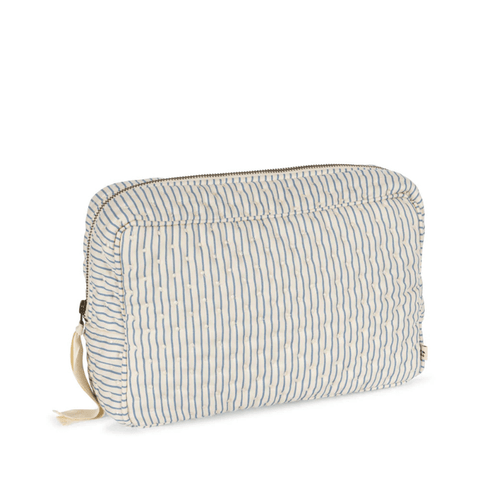 A pretty quilted toiletry bag for the contemporary parent who desires to be both practical and chic. The Konges Sløjd toiletry bag can be used to carry your baby's toiletries, enclose care products for the maternity ward, or take toiletries and make-up for a weekend or holiday. Easy to open and close thanks to its ribbon tied to the zip. The toiletry bag is coated on the inside to avoid liquids from leaking through, when accidents happen.