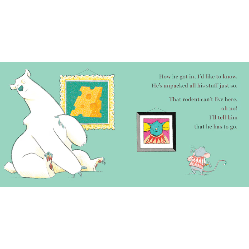 The tables have turned in this hilarious follow-up to There’s a Bear on My Chair. But this time it’s Bear who has an unwelcome guest, and this mouse just won’t leave! He’s making a real commotion in Bear’s house—eating all the food, listening to loud music, and even spilling bathwater all over the floor! But when there’s a knock at the door, will Bear decide that visitors aren’t so bad after all?