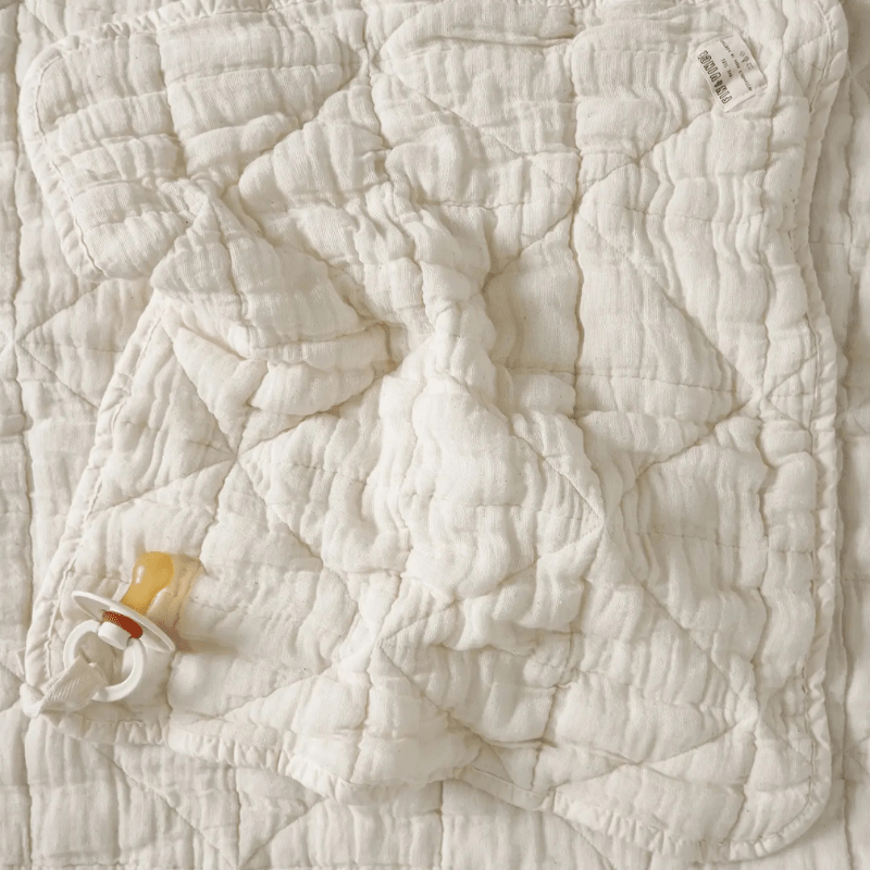 New Grain's beloved quilt now in a mini size, perfect for snuggles, traveling, nap-time, and makes the pacifier easy to find in your diaper bag! A baby must-have! snap feature to hold pacifier, teether, toy etc...