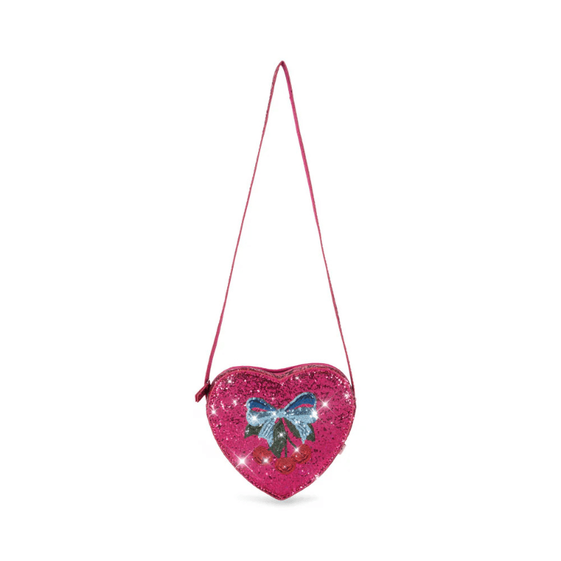 Heart shaped shoulder bag with glitter and a slim shoulder strap. Perfect for bringing all your little essentials on the go.
