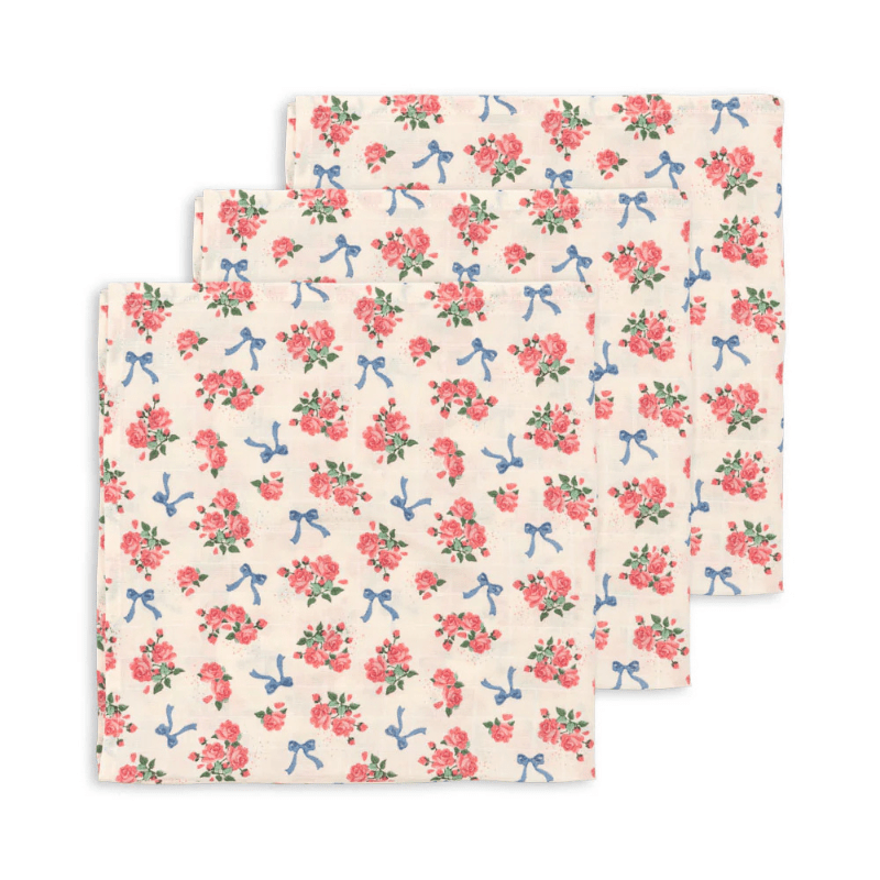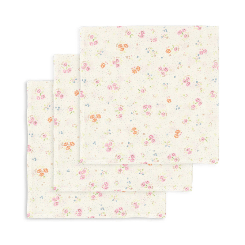 Soft multipurpose 3-pack of muslin cloths made of 100% organic cotton. Choose between a wide variety of colours and signature prints. Perfectly handy for several purposes; when nursing, eating or sleeping.