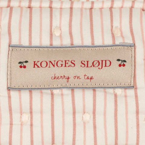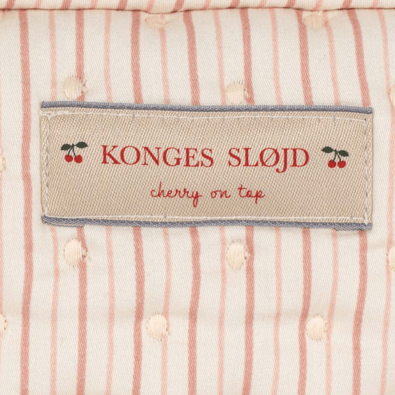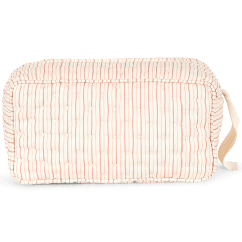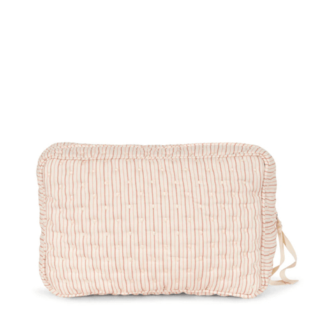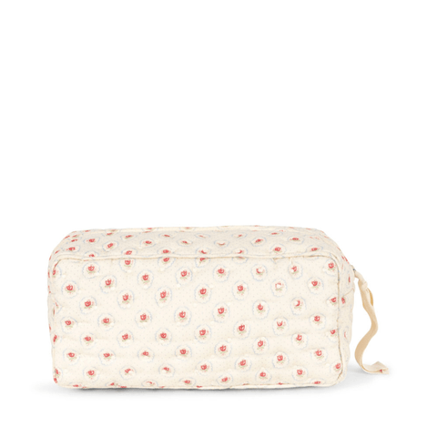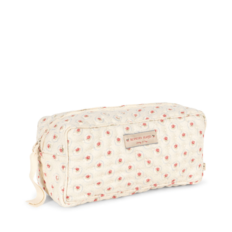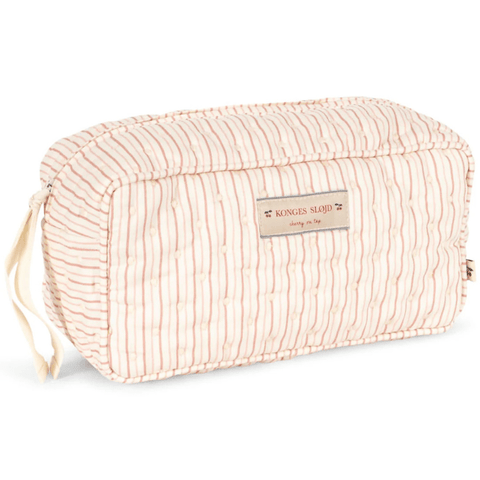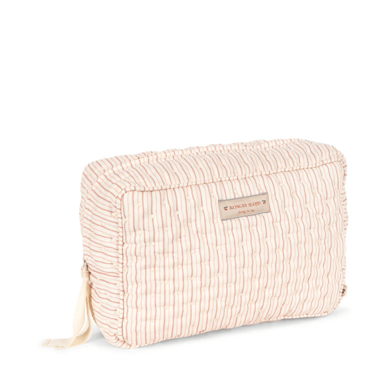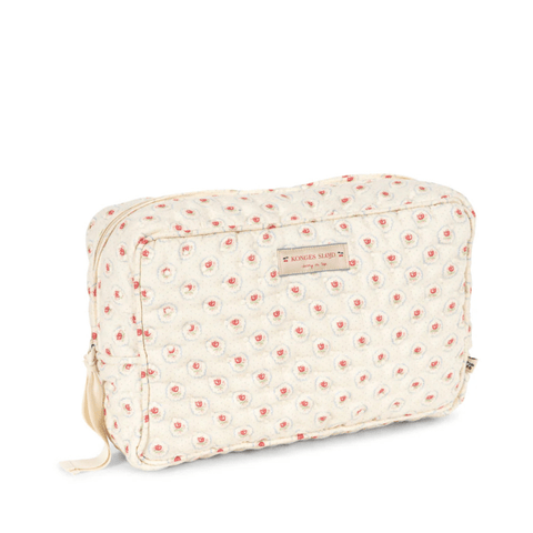A pretty quilted toiletry bag for the contemporary parent who desires to be both practical and chic. The Konges Sløjd toiletry bag can be used to carry your baby's toiletries, enclose care products for the maternity ward, or take toiletries and make-up for a weekend or holiday. Easy to open and close thanks to its ribbon tied to the zip. The toiletry bag is coated on the inside to avoid liquids from leaking through, when accidents happen.