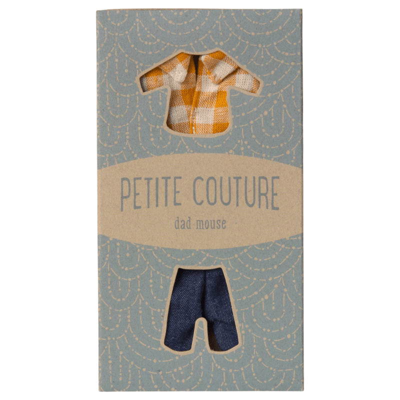 If you need a new set of clothes for your mouse this set will be a good choice. This set consists of a yellow checked shirt and pants.