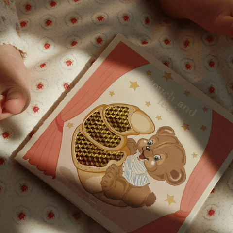 Heavy cardboard book that is perfect for little fingers to touch and feel. Made to stimulate the senses with crinkly, fluffy, colorful textures and illustrations.