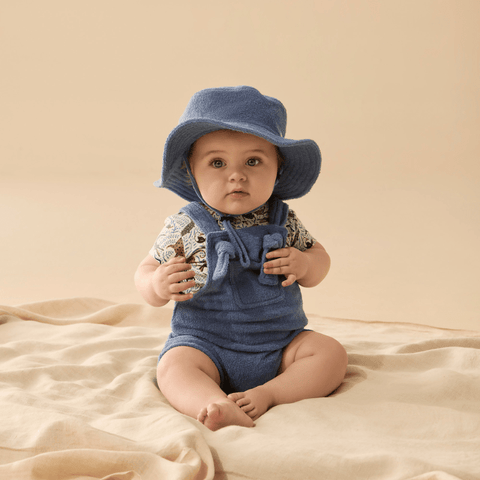 Keep little ones cool and protected with this GOTS-certified organic cotton terry towelling sun hat. Soft, absorbent, and perfect for sunny days, it comes in a rich colour and features a wide brim for extra sun coverage. The adjustable fit around the head and under the chin keeps it secure during active play. Gentle on delicate skin and made without harmful chemicals, this sun hat is a must-have for warm-weather adventures.