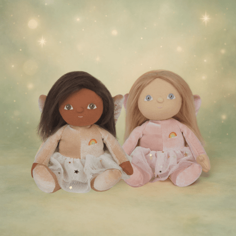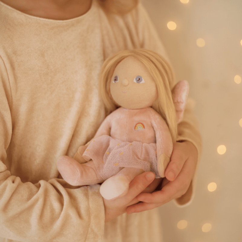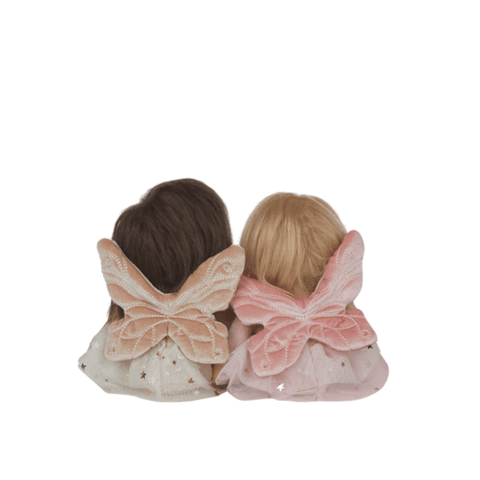 With her twinkly wings, starry tutu, and cheeky grin, Faye is full of surprises and just the right amount of mischief. Her soft, posable body is perfect for cuddles, adventures, and secret hideouts. Whether she’s dancing across make-believe clouds or being tucked into a coat pocket, she brings sparkle and giggles wherever she goes.