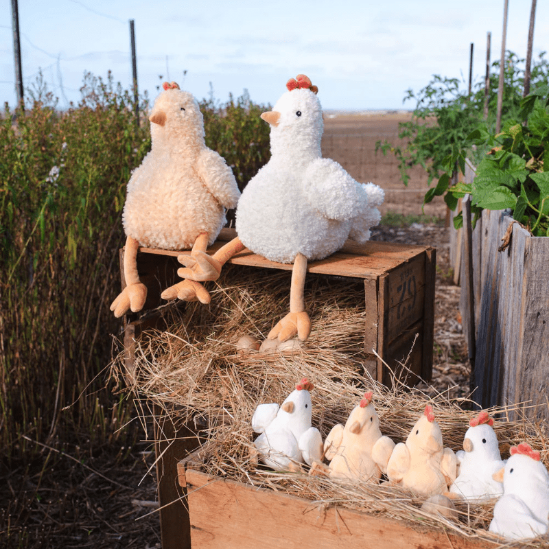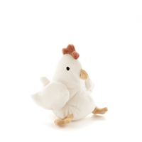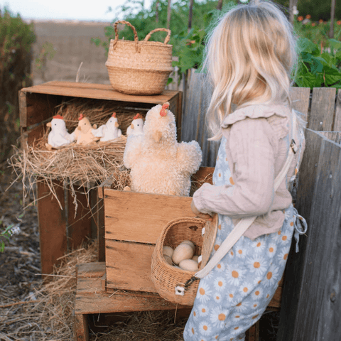 Henrietta the Hen is a true food snob, only pecking at the finest organic grains. She’ll turn her beak up at anything less. On the Nana Huchy Farm, she’s not fond of the cats, eyeing them suspiciously as they prowl about. Henrietta believes the felines have sneaky plans so she cautiously clucks around the garden, staying safe from their prying eyes.