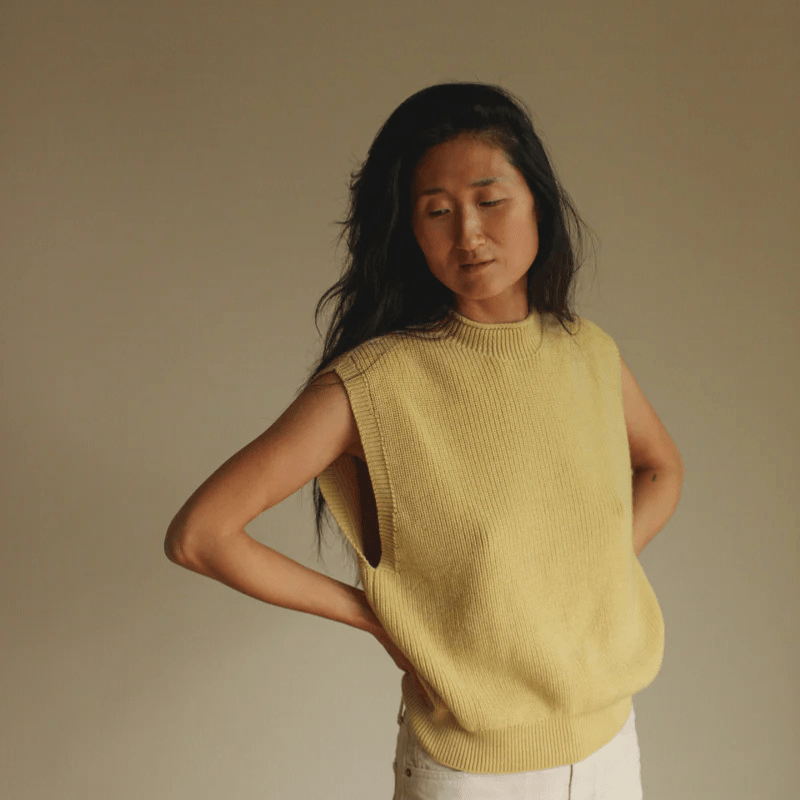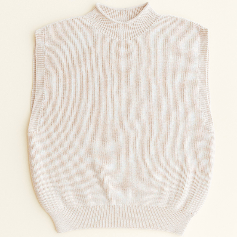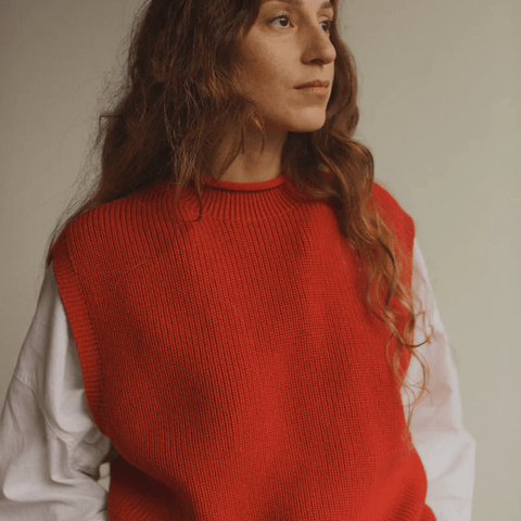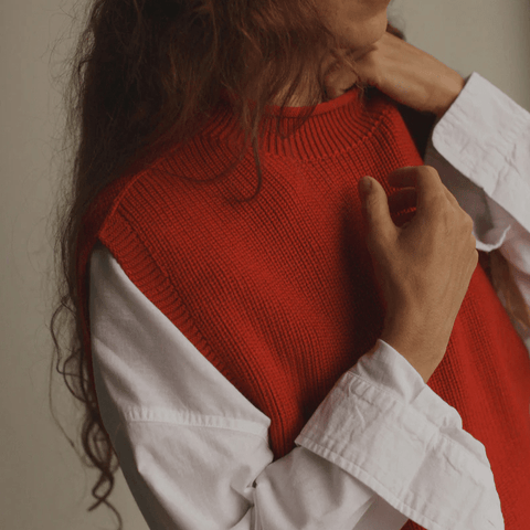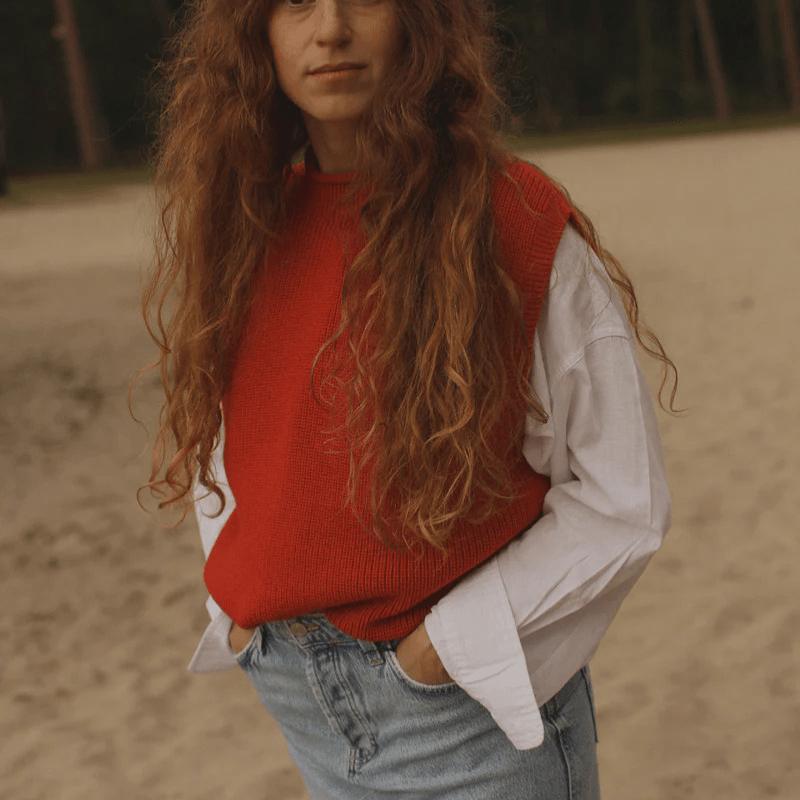 Helle is a 3D vest knitted in one piece. The seamless finishing makes it comfortable to wear and gives a clean design and fit. This classic vest is made in a fisherman’s rib featuring a little collar. The texture is incredibly soft, making it possible to wear directly on the skin, a plus for mothers who breastfeed. Vest Helle is a versatile piece that can be paired with a shirt, blouse, or skirt to complete your outfit.