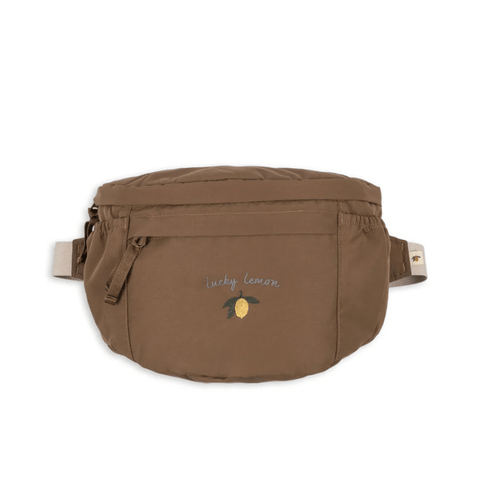 Water-resistant and functional bumbag with adjustable shoulder strap. Designed with an elastic inner pocket that makes it easy to store and organize your essentials. The Konges Sløjd bumbag has practical pockets and D-rings on each side that attach to the stroller handles or frame with pram hooks. All pockets close with zippers, except for ones on the side. It can be worn over the shoulder or on the waist. The quality is both soft and dirt-repellent.