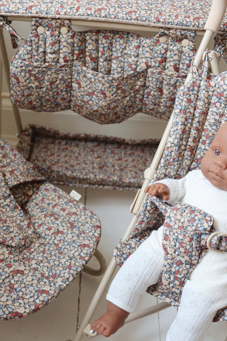 Let your little one stroll in style with Konges Sløjd's organic cotton doll stroller, featuring double wheels for a smooth ride every time.