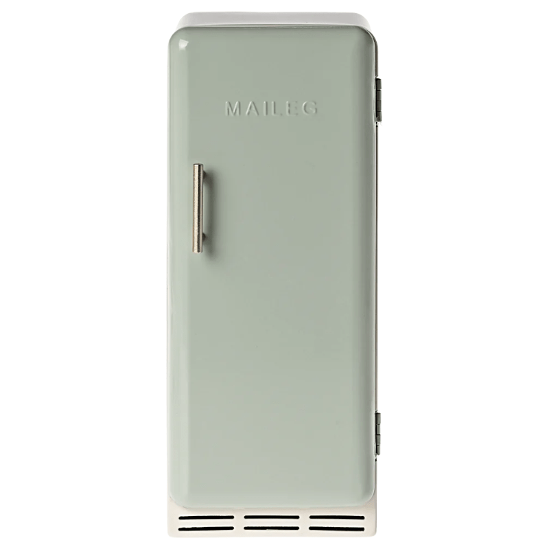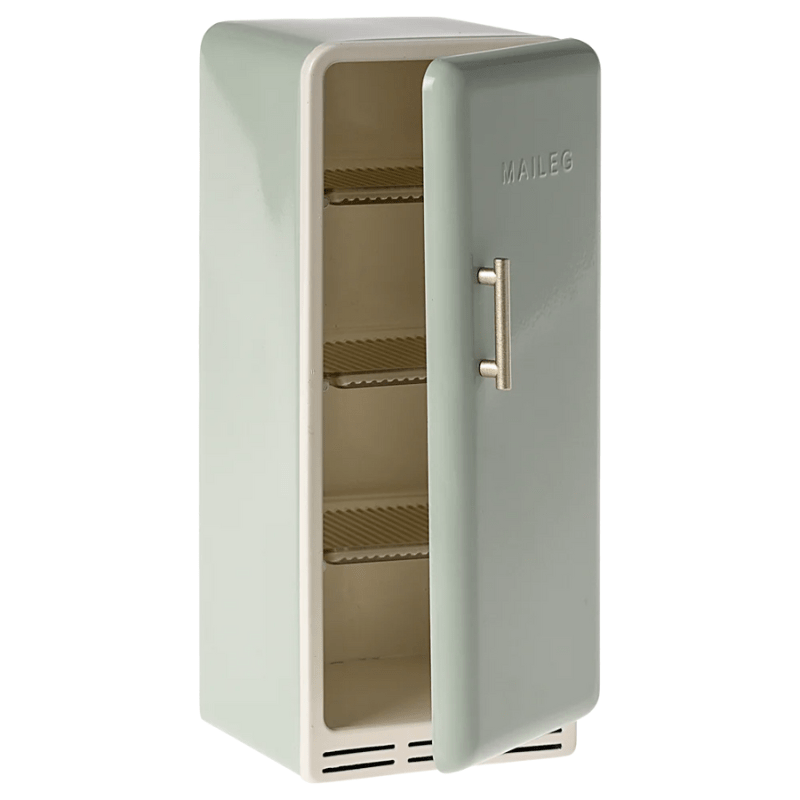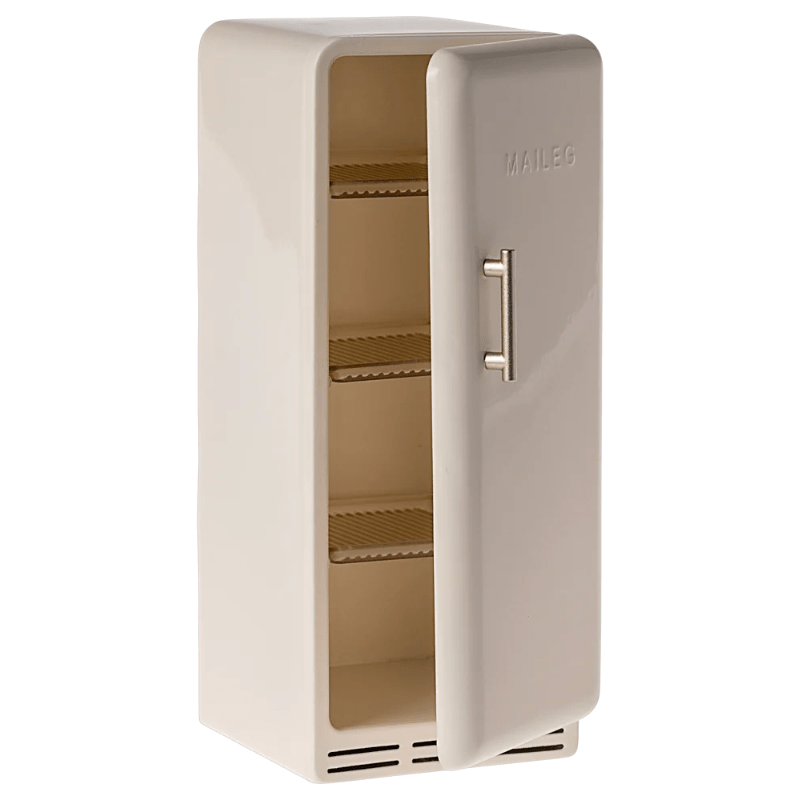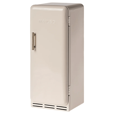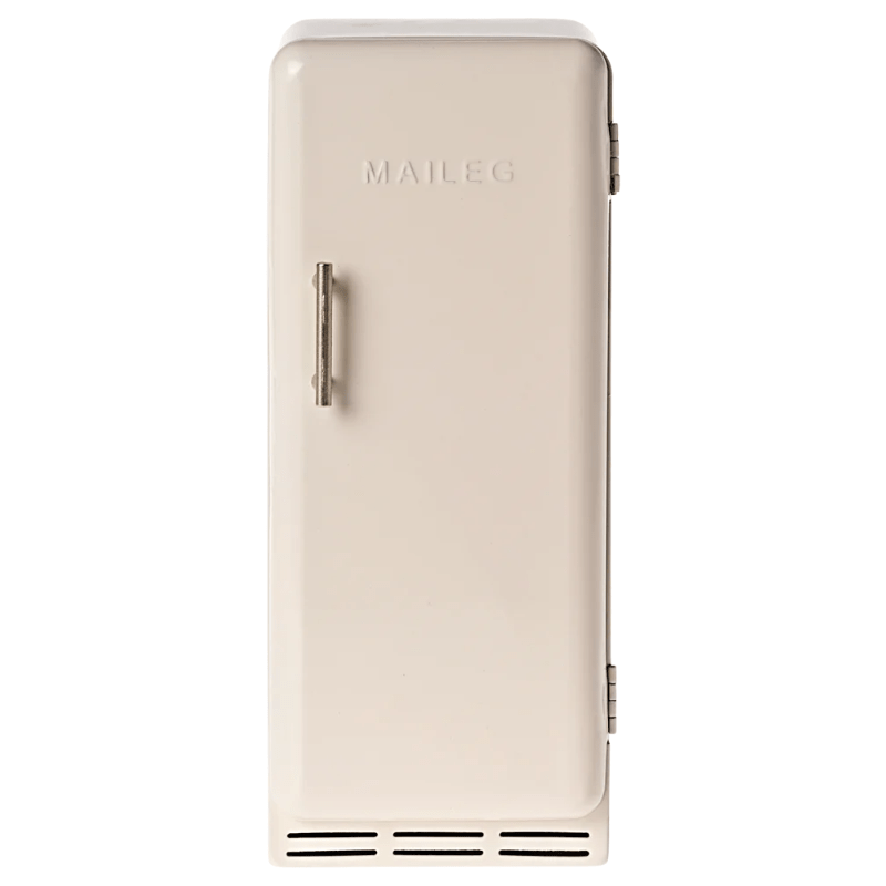 An old fashioned fridge that fits perfectly into the House of miniature dollhouse. The fridge is made in metal with magnetic lock and frosted shelves inside. A great addition to this fridge is our Miniature grocery box.