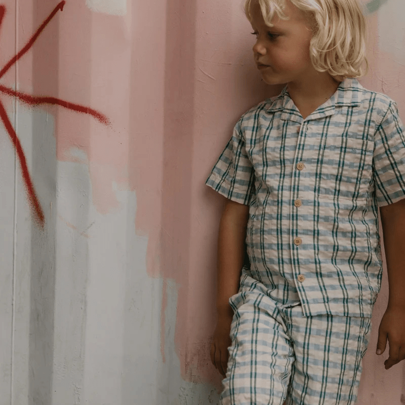 Seersucker Baby Shirt by Garbo & Friends - 62/68 (2-6 months) / Azulejos Emerald